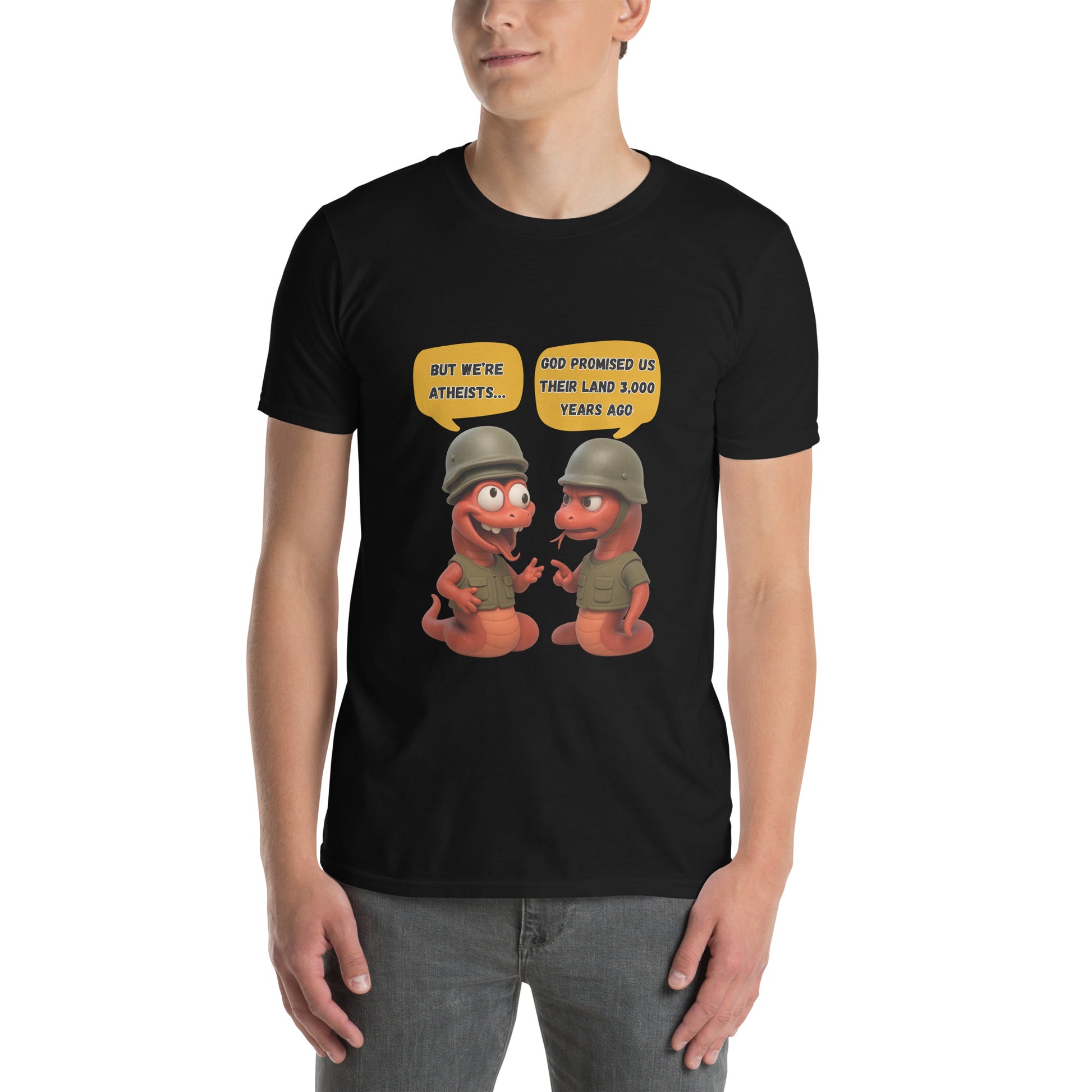 Two military snakes share a surreal exchange—where stolen myths meet modern armor. Absurdity wrapped in logic, all served with a cold stare.